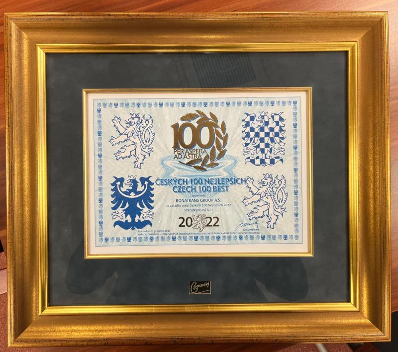 Společnost BONATRANS GROUP letos uspěla v kategorii „Strojírenství a IT“. Ocenění převzal během slavnostního předávání ve Španělském sálu Pražského hradu Michal Neumann, provozní ředitel BONATRANS. Jak poznamenal, motto soutěže je „Per aspera ad astra“, tedy přes překážky ke hvězdám. „V BONATRANS máme hvězdu či hvězdy společné, překážky každý z nás na své úrovni, na úrovni oddělení a útvarů, překážky přes útvary a také s dodavateli či zákazníky. Toto ocenění v každém případě patří všem, kteří k úspěchu BONATRANS přispěli.